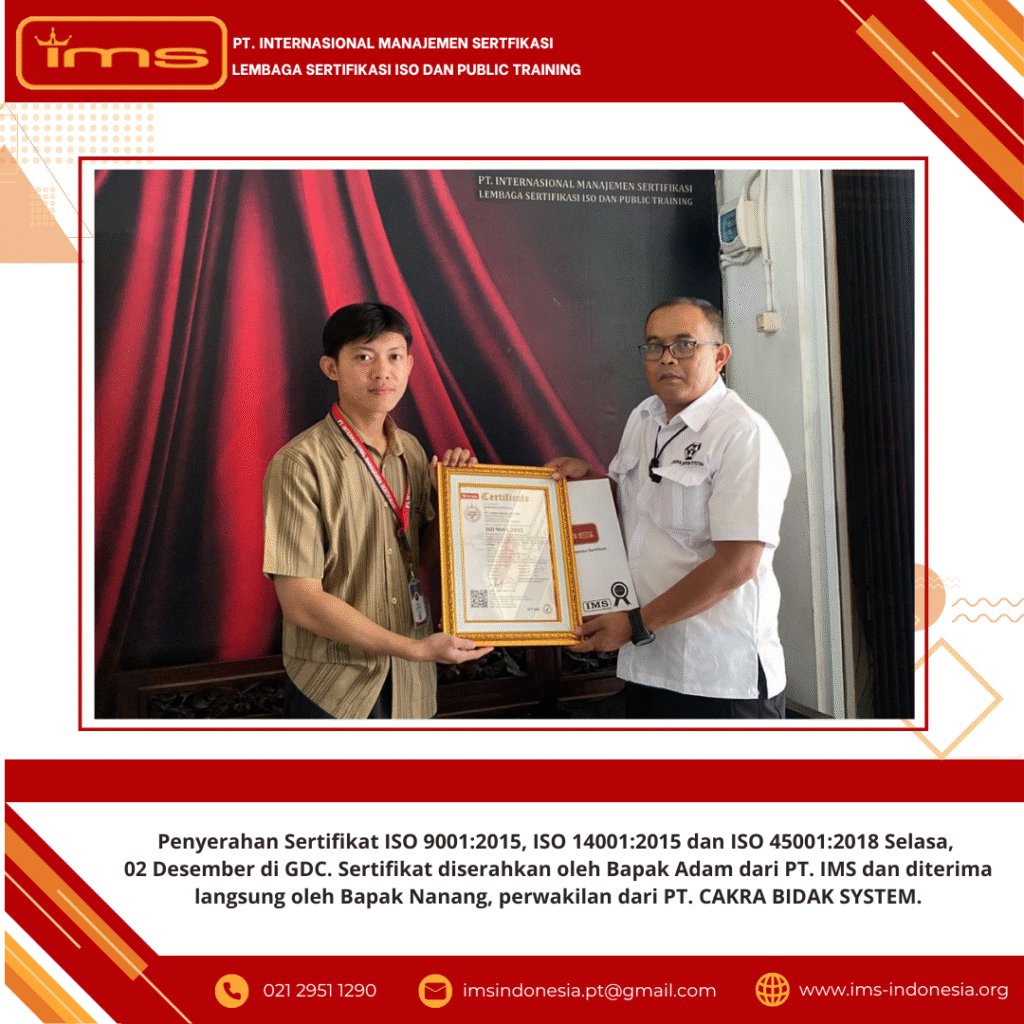 Resertifikasi PT. CAKRA BIDAK SYSTEM 9001, 14001 dan 45001 Pada tanggal 01 Desember 2025.